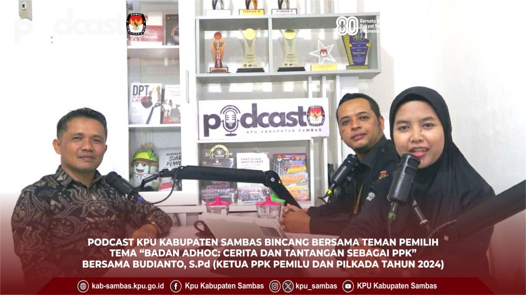 #TemanPemilih, Podcast KPU Kabupaten Sambas, Tamu Spesial Narasumber dari Ketua PPK Pemilu dan Pilkada Tahun 2024 di Ruang Podcast KPU Kabupaten Sambas. (27/8)