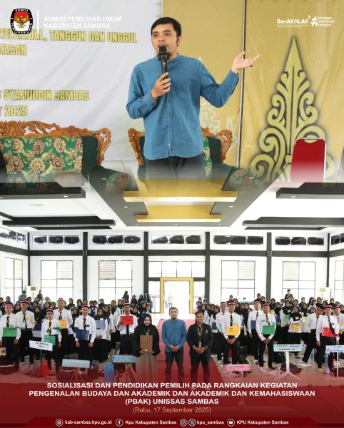 Sosialisasi dan Pendidikan Pemilih pada rangkaian Pengenalan Budaya Akademik dan Kemahasiswaan (PBAK) Universitas Islam Sultan Muhammad Syafiuddin (UNISSAS) Sambas