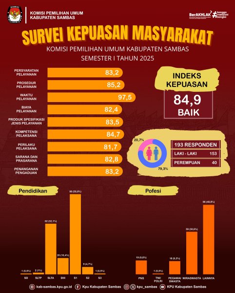 KPU Kabupaten Sambas pada Semester I Tahun 2025 Berhasil Memperoleh Indeks Kepuasan Masyarakat (IKM) Sebesar 84,9 Dengan Kategori BAIK