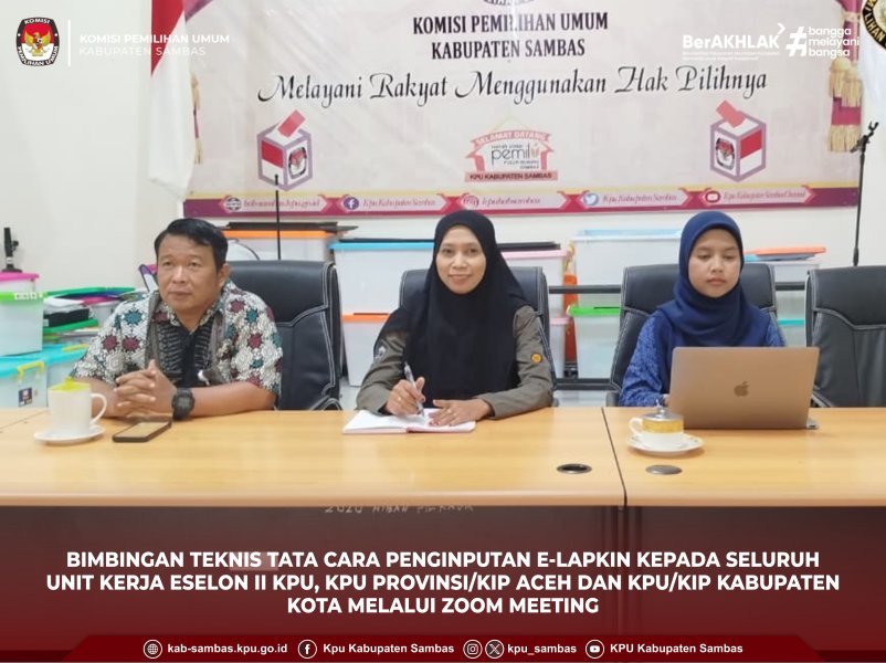 sambas.kpu.go.id - KPU Kabupaten Sambas Mengikuti Bimbingan Teknis Tata Cara Penginputan E-Lapkin Kepada Seluruh Unit Kerja Eselon II KPU, KPU Provinsi/KIP Aceh dan KPU/KIP Kabupaten Kota Melalui Zoom Meeting Digelar Oleh Komisi Pemilihan Umum Republik Indonesia. Rabu (24/9/2025). Kegiatan Diikuti Oleh Sekretaris KPU Kabupaten Sambas, Kepala Sub Bagian dan Staf Pelaksana Perencanaan, Data dan Informasi Kabupaten Sambas.