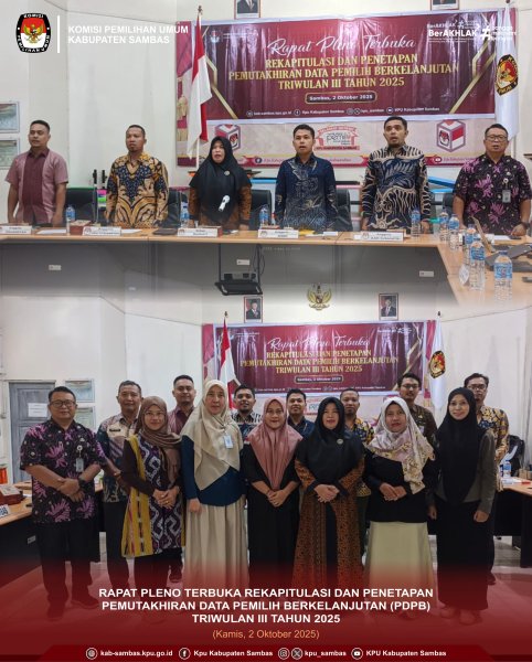 sambas.kpu.go.id - Sambas, Komisi Pemilihan Umum Kabupaten Sambas menetapkan sebanyak 462.121 jiwa pemilih yang tertuang dalam berita acara Pemutakhiran Data Pemilih Berkelanjutan triwulan tiga tahun 2025. Hal ini itu ungkapkan oleh Ketua KPU Kabupaten Sambas, Irawati, Kamis (2/10) pagi, pada saat rapat pleno terbuka rekapitulasi dan penetapan PDPB triwulan tiga.