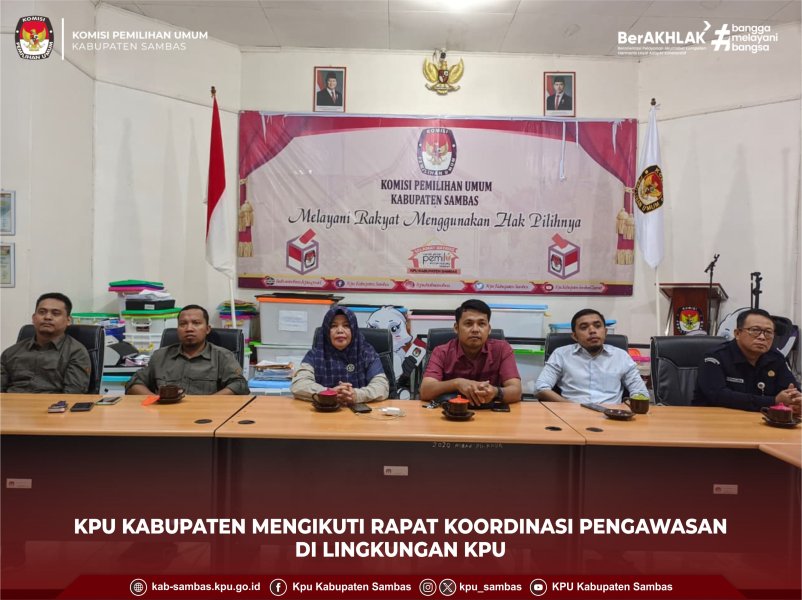 sambas.kpu.go.id - Sambas, KPU Kabupaten Sambas mengikuti Rapat Koordinasi Hasil Pengawasan yang diselenggarakan oleh Komisi Pemilihan Umum Republik Indonesia secara daring. Selasa (21/10/2025). Kegiatan dilaksanakan di Aula Kantor KPU Kabupaten Sambas diikuti oleh Ketua dan Anggota KPU Kabupaten Sambas, Sekretaris, serta Kasubbag Sekretariat KPU Kabupaten Sambas. Rapat Koordinasi tersebut menghadirkan narasumber dari berbagai lembaga nantara lain Badan Pemeriksa Keuangan (BPK), Badan Pengawasan Keuangan dan Pembangunan (BPKP), Kejaksaan, Kepolisian dan Komisi Pemberantasan Korupsi (KPK). Salah satu tujuan kegiatan ini adalah untuk meningkatkan dan memperkuat kinerja pengawasan di lingkungan KPU melalui penyampaian materi dari masing-masing narasumber. Materi yang disampaikan meliputi Overview Penyelenggaraan Sistem Pengendalian Intern Pemerintah (SPIP) oleh BPKP, Sinergitas KPU dan APH dalam penanganan dan penyelesaian kasus tipikor dan Peran APIP dan Biro Hukum Atas Permasalahan Tipikor pada KPU Provinsi dan KPU Kabupaten/Kota oleh unsur Kepolisian dan Kejaksaan, Sosialisasi Whistle Blowing System (WBS) oleh KPK serta Komitmen Penyelesaian Tindak Lanjut Hasil Pemeriksaan oleh BPK. Melalui kegiatan ini, diharapkan jajaran KPU di seluruh tingkatan dapat semakin memahami dan menerapkan prinsip akuntabilitas serta integritas dalam setiap pelaksanaan tugas dan fungsi kelembagaan. (ADM)