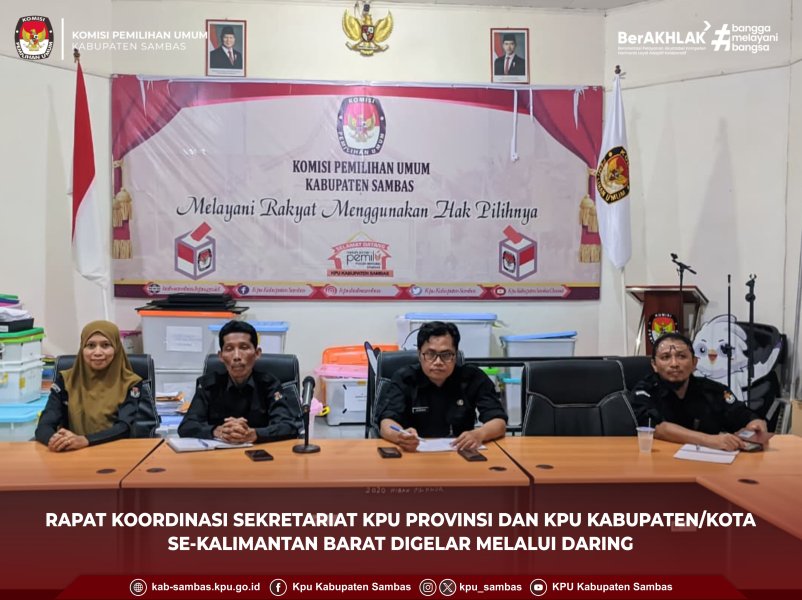 sambas.kpu.go.id - Sambas, KPU Kabupaten Sambas mengikuti Rapat Koordinasi Sekretariat KPU Provinsi dan KPU Kabupaten/Kota se-Kalimantan Barat yang digelar oleh KPU Provinsi Kalimantan Barat secara daring, Rabu (29/10/2025).
