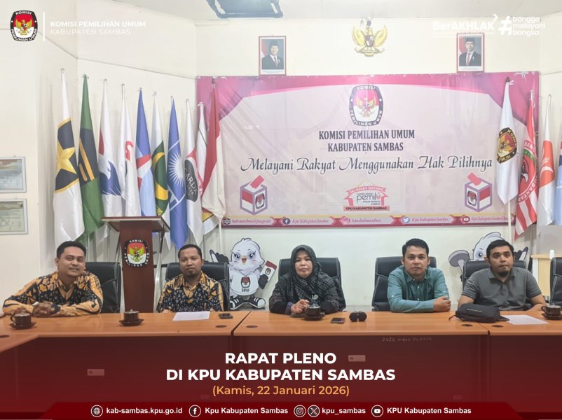 sambas.kpu.go.id - Sambas, KPU Kabupaten Sambas melaksanakan Rapat Pleno Rutin yang bertempat di Ruang Aula Kantor KPU Kabupaten Sambas, Kamis (22/1/2026).