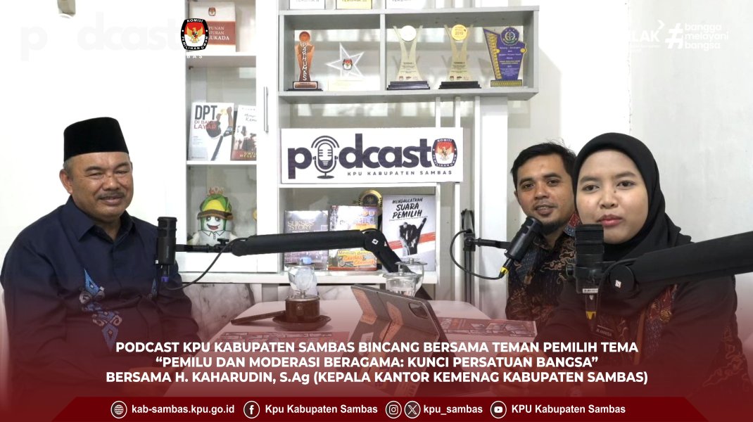 KPU Kabupaten Sambas berharap momentum Podcast ini dapat menjadi sarana edukasi dan refleksi bagi masyarakat, khususnya pemilih, dalam memahami bahwa Pemilu dan moderasi beragama memiliki peran strategis dalam memperkokoh persatuan bangsa serta menjaga stabilitas sosial di tengah keberagaman. Dapat dikunjungi pada link https://www.youtube.com/watch?v=efK5mgdOew0. (ADM)