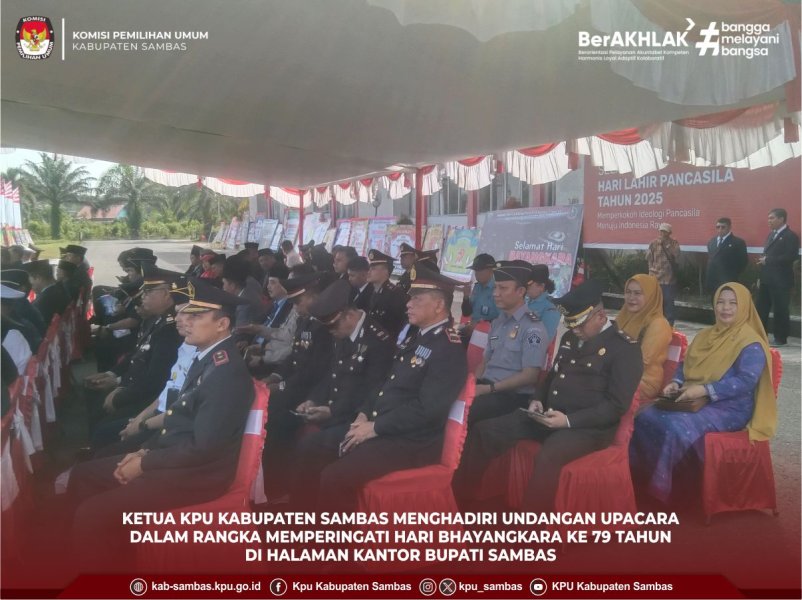 sambas.kpu.go.id - Sambas, Ketua KPU Kabupaten Sambas, Irawati Menghadiri Undangan Upacara Dalam Rangka Memperingati Hari Bhayangkara Ke 79 Tahun. Bertempat di Halaman Kantor Bupati Sambas. Selasa (1/7/2025).