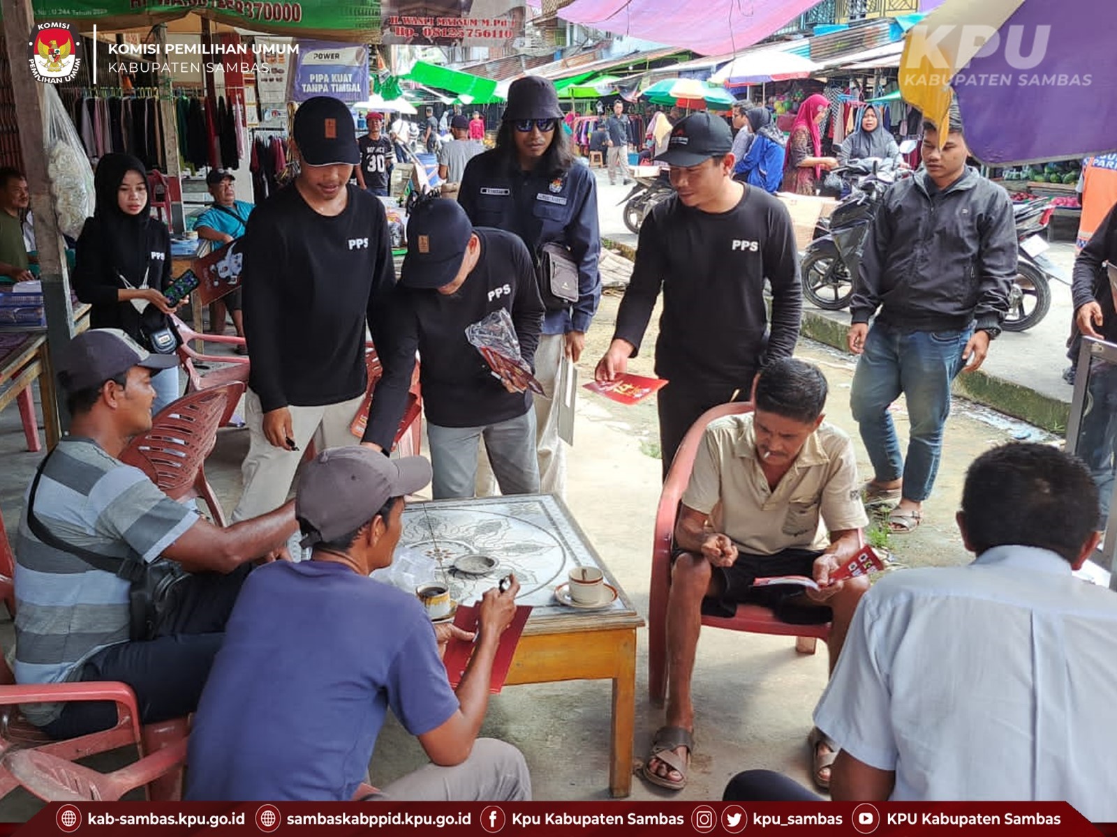 Unsur yang terlibat dalam kegiatan ini yaitu KPU Kabupaten Sambas, Polres Sambas, Dinas Perhubungan Kab. Sambas, Satpol PP Kab. Sambas, Aparatur Kantor Camat Setempat, Polsek setempat, PPK dan PPS beserta Panwascam di wilayah Kecamatan yang dituju. (humas KPU kab.sambas)