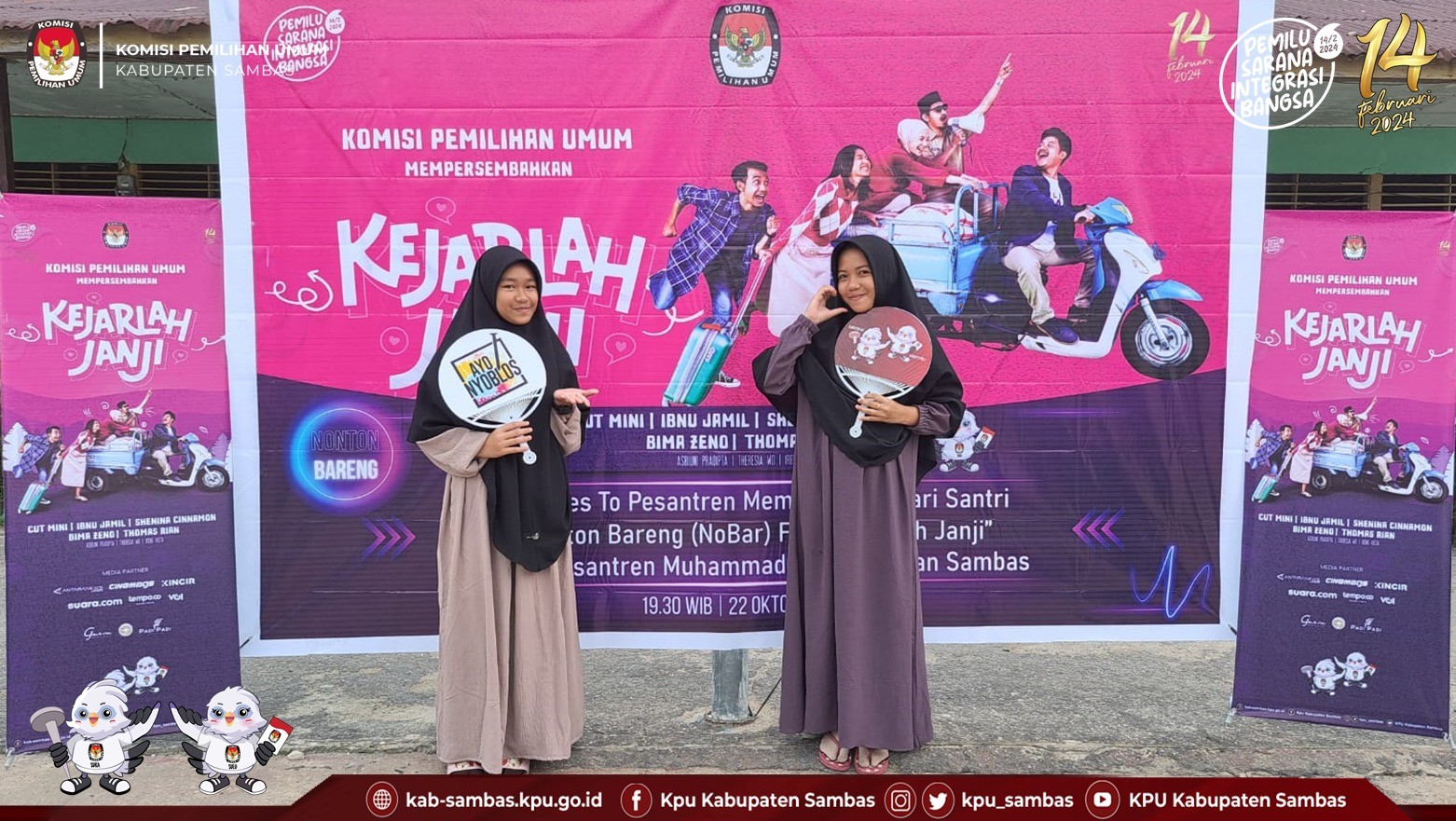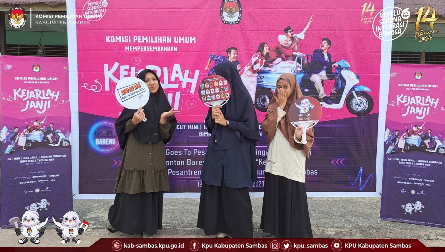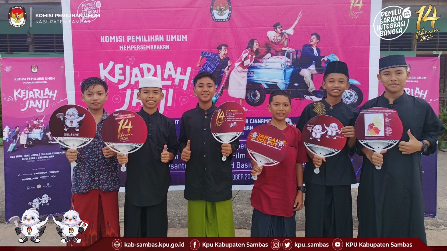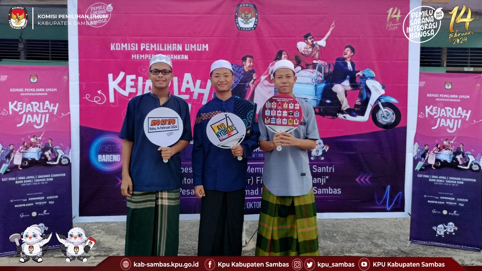 Sambas, kab-sambas.kpu.go.id - KPU Kabupaten Sambas menggelar kegiatan Nonton Bareng Film "Kejarlah Janji" yang dihadiri oleh para Santri bertempat di Pondok Pesantren Muhammad Basiuni Imran Sambas, Minggu (22/10/2023).