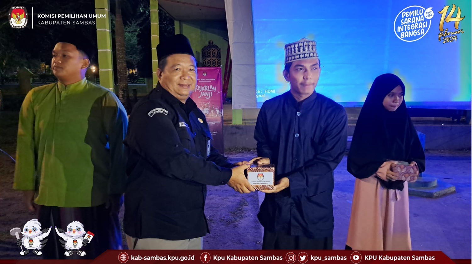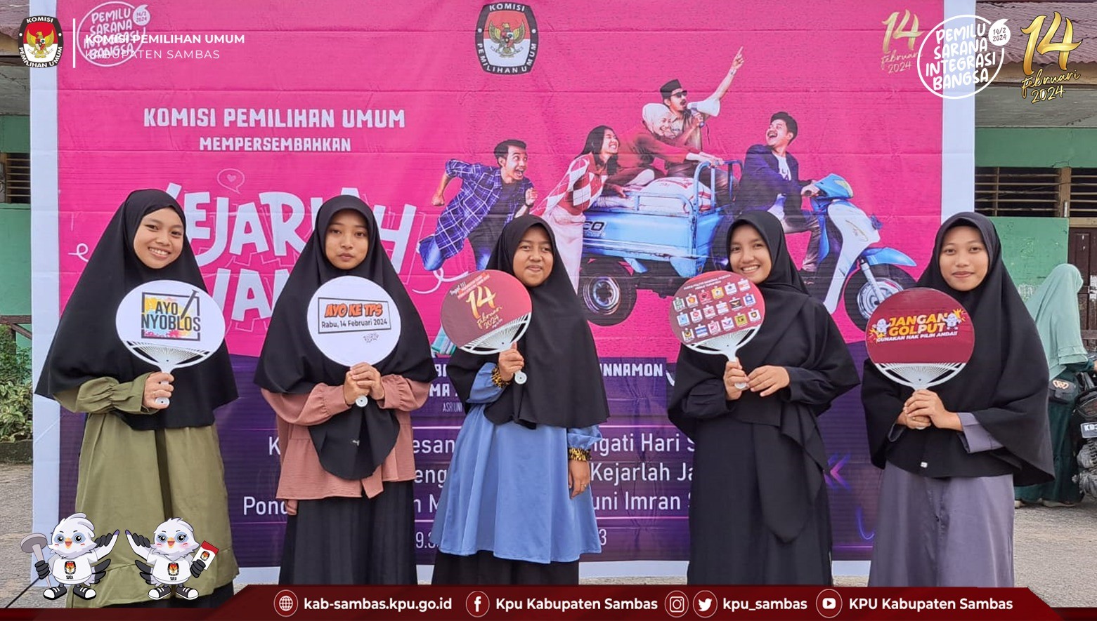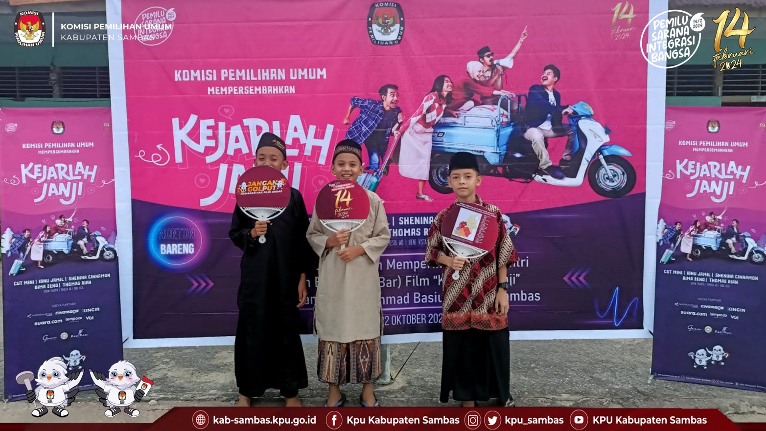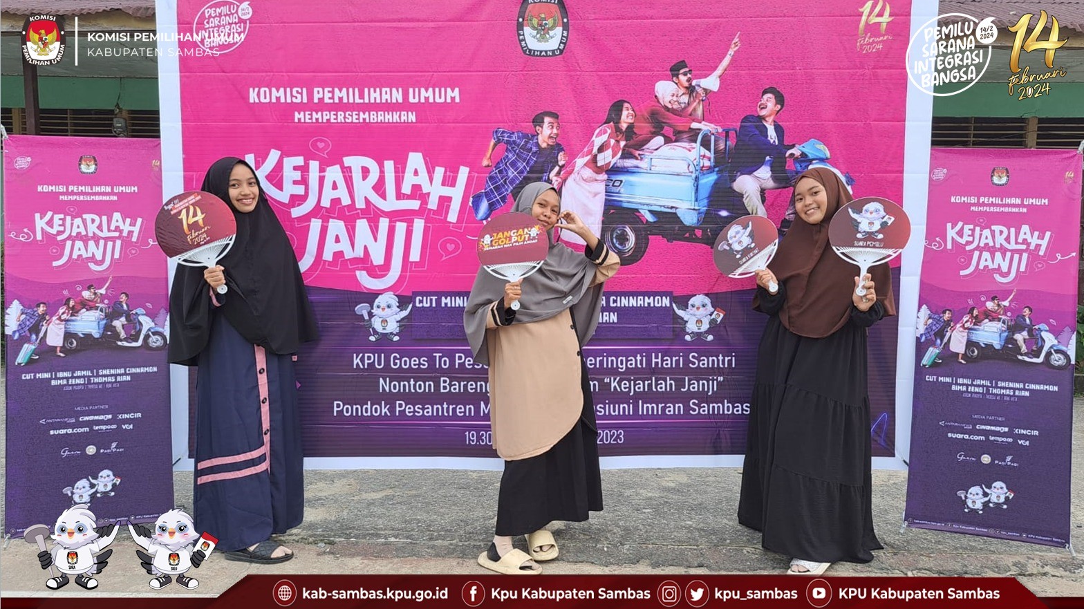 Sambas, kab-sambas.kpu.go.id - KPU Kabupaten Sambas menggelar kegiatan Nonton Bareng Film "Kejarlah Janji" yang dihadiri oleh para Santri bertempat di Pondok Pesantren Muhammad Basiuni Imran Sambas, Minggu (22/10/2023).
