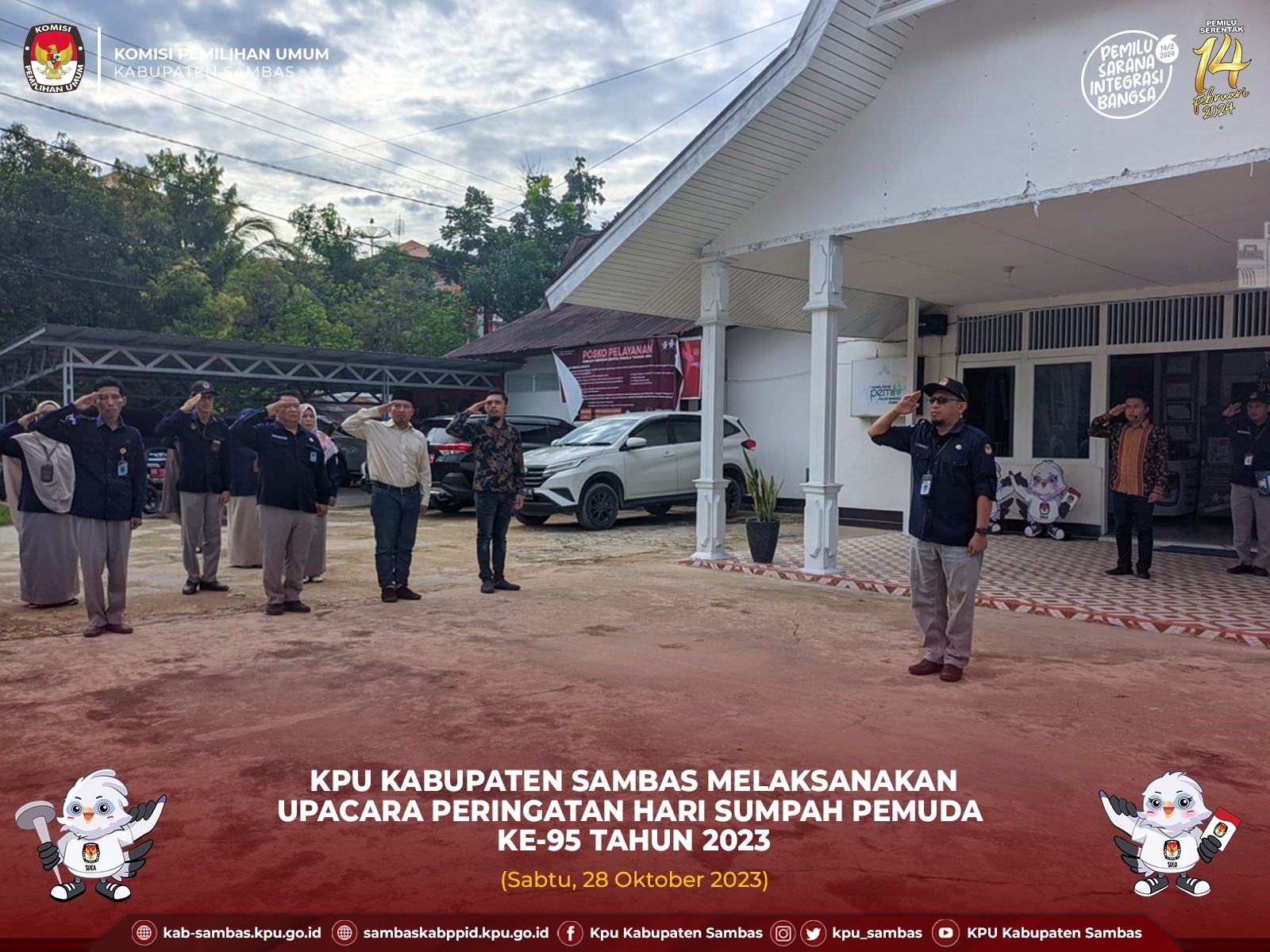 KPU Sambas melaksanakan Upacara memperingati hari Sumpah Pemuda ke-95 Tahun 2023, bertempat di halaman kantor KPU Kabupaten Sambas, Sabtu (28/10/2023).