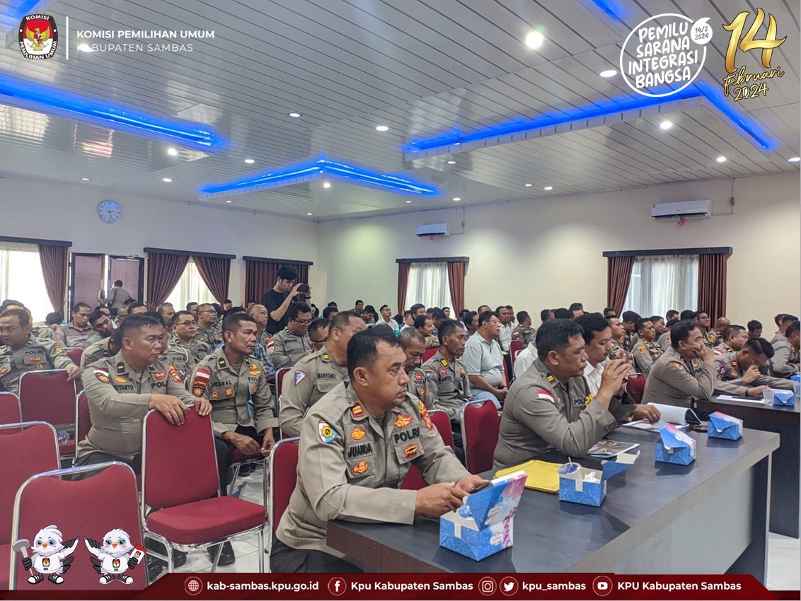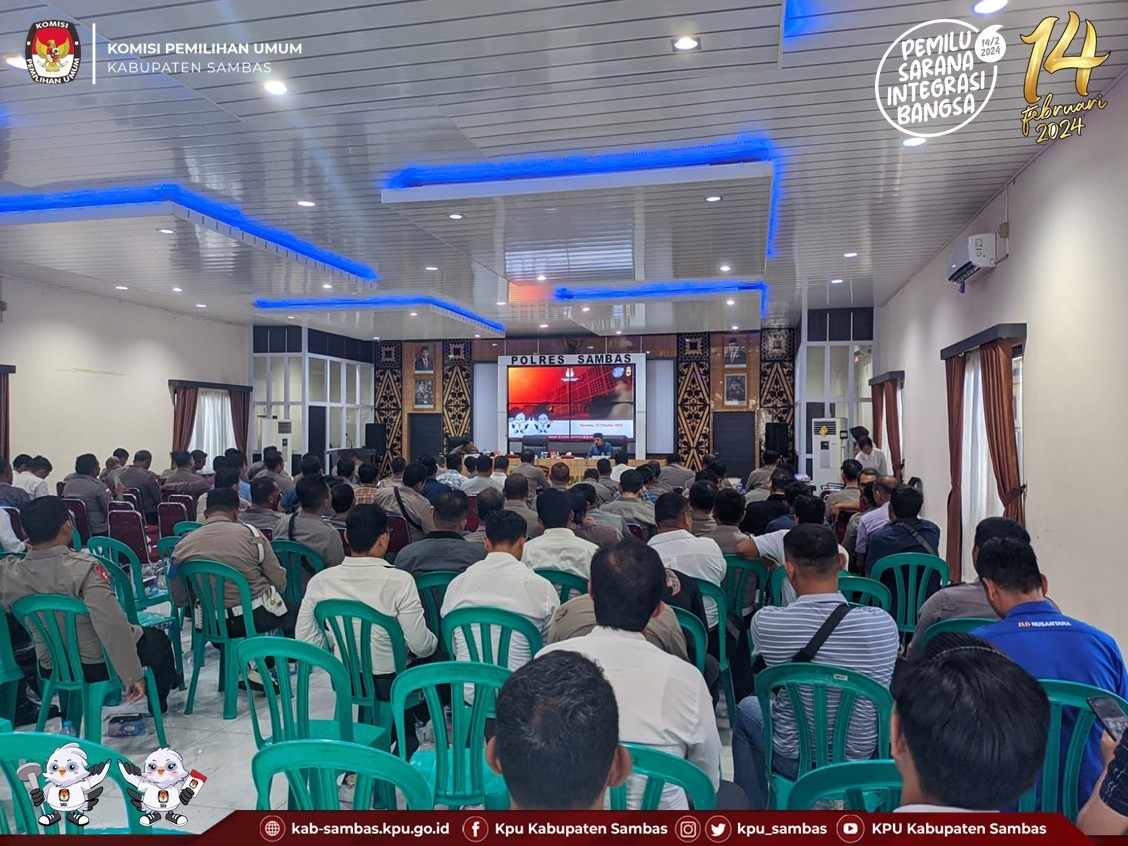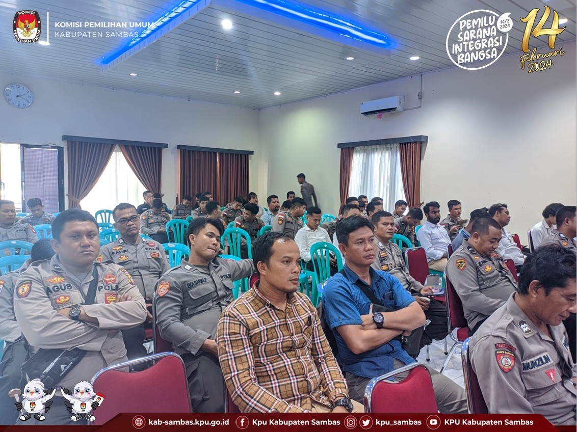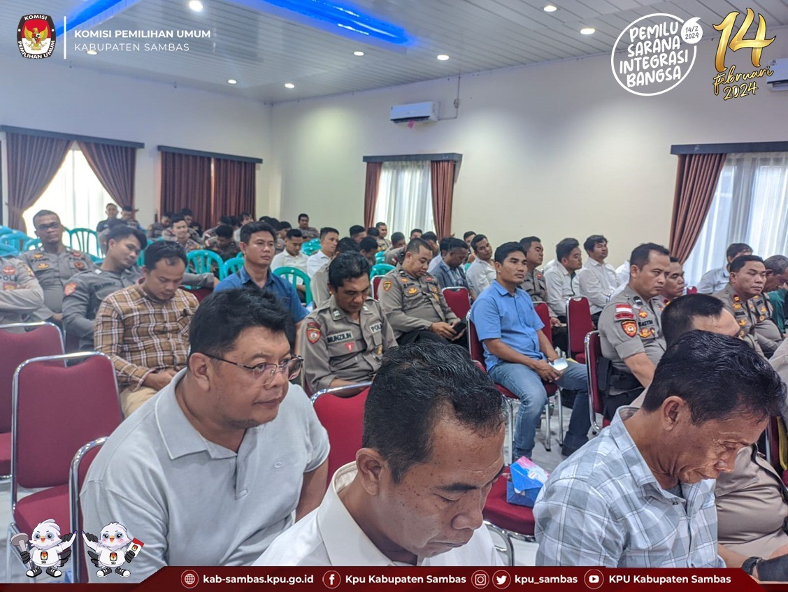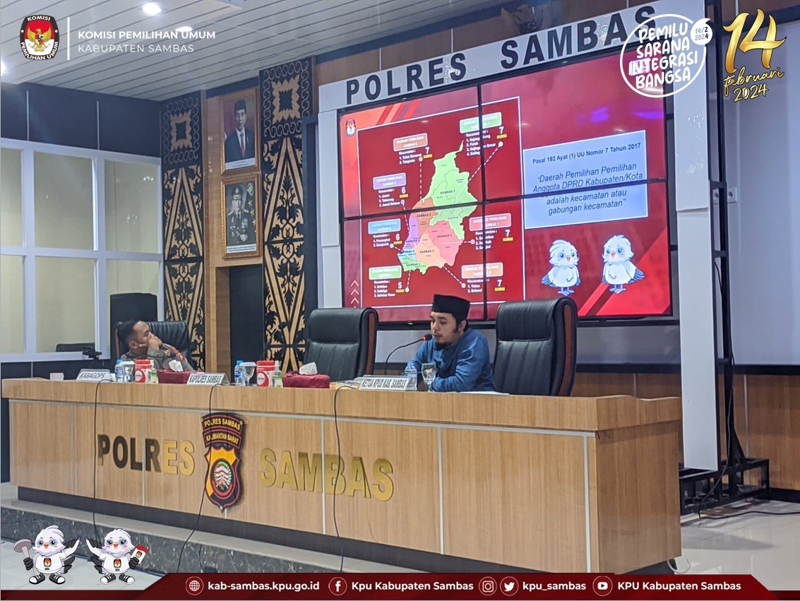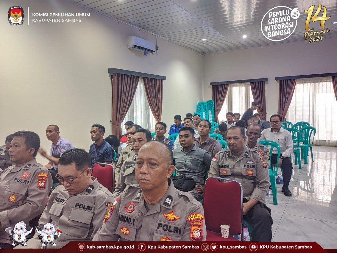 Dalam penyampaian materi Aan Sumantri menekankan pentingnya kolaborasi antara penyelenggara Pemilu dengan stakeholder dalam rangka mensukseskan pemilu 2024 di Kabupaten Sambas, selain itu juga disampaikan beberapa tahapan yang memerlukan kerjasama dengan pihak polres diantaranya pada tahapan kampanye, distribusi logistik, pengamanan di lokasi TPS serta dalam tahapan rekapitulasi hasil.