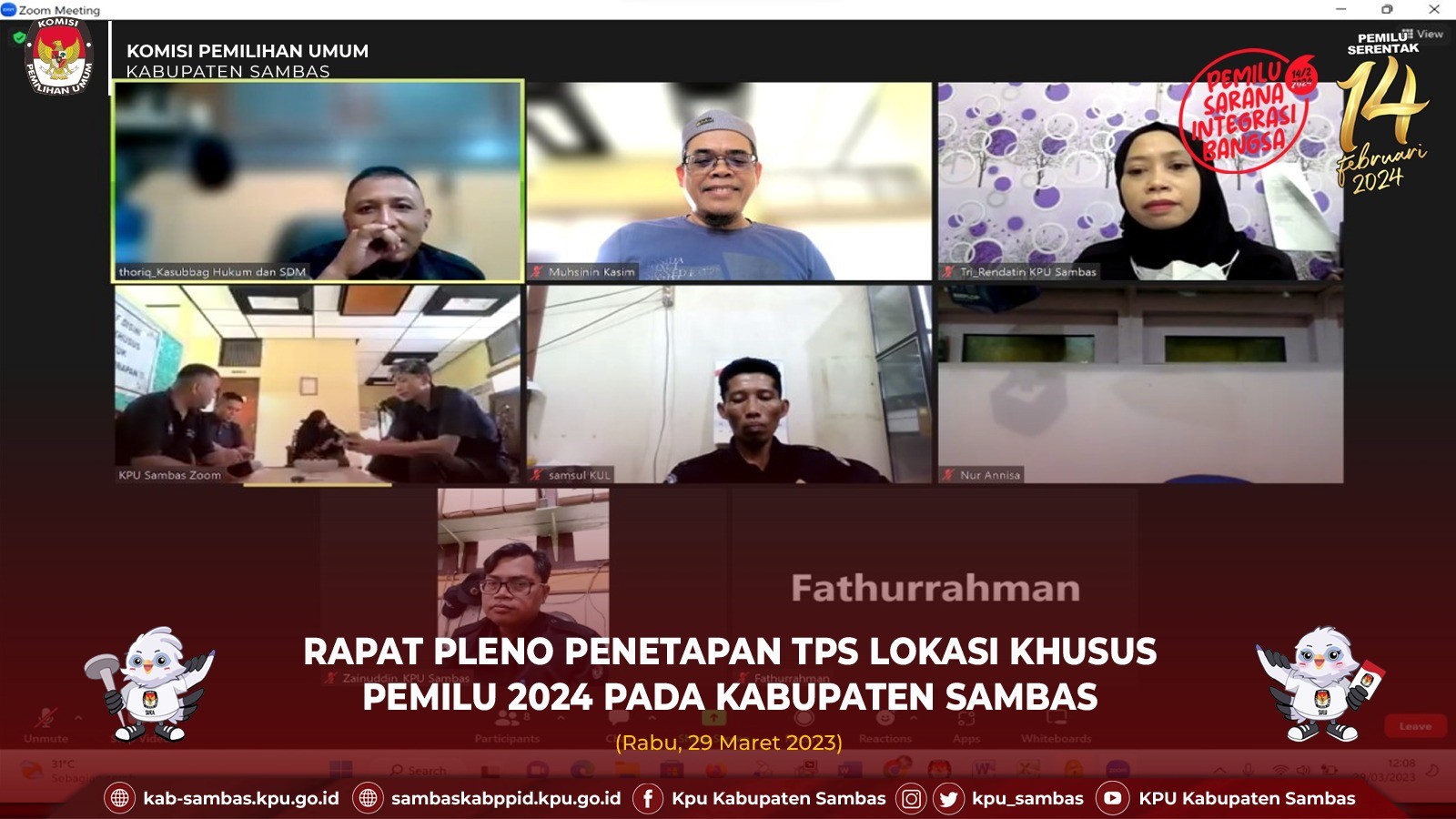 Sambas, kab-sambas.kpu.go.id - KPU Sambas melaksanakan Rapat Pleno penetapan pendirian Tempat Pemungutan Suara di Lokasi Khusus pada Pemilihan Umum Tahun 2024 di Wisma Korpri Pontianak, Rabu (29/3/2023). Rapat yang dilaksanakan secara daring ini dihadiri oleh Ketua dan Anggota beserta Sekretaris dan jajaran Sekretariat KPU Kabupaten Sambas.