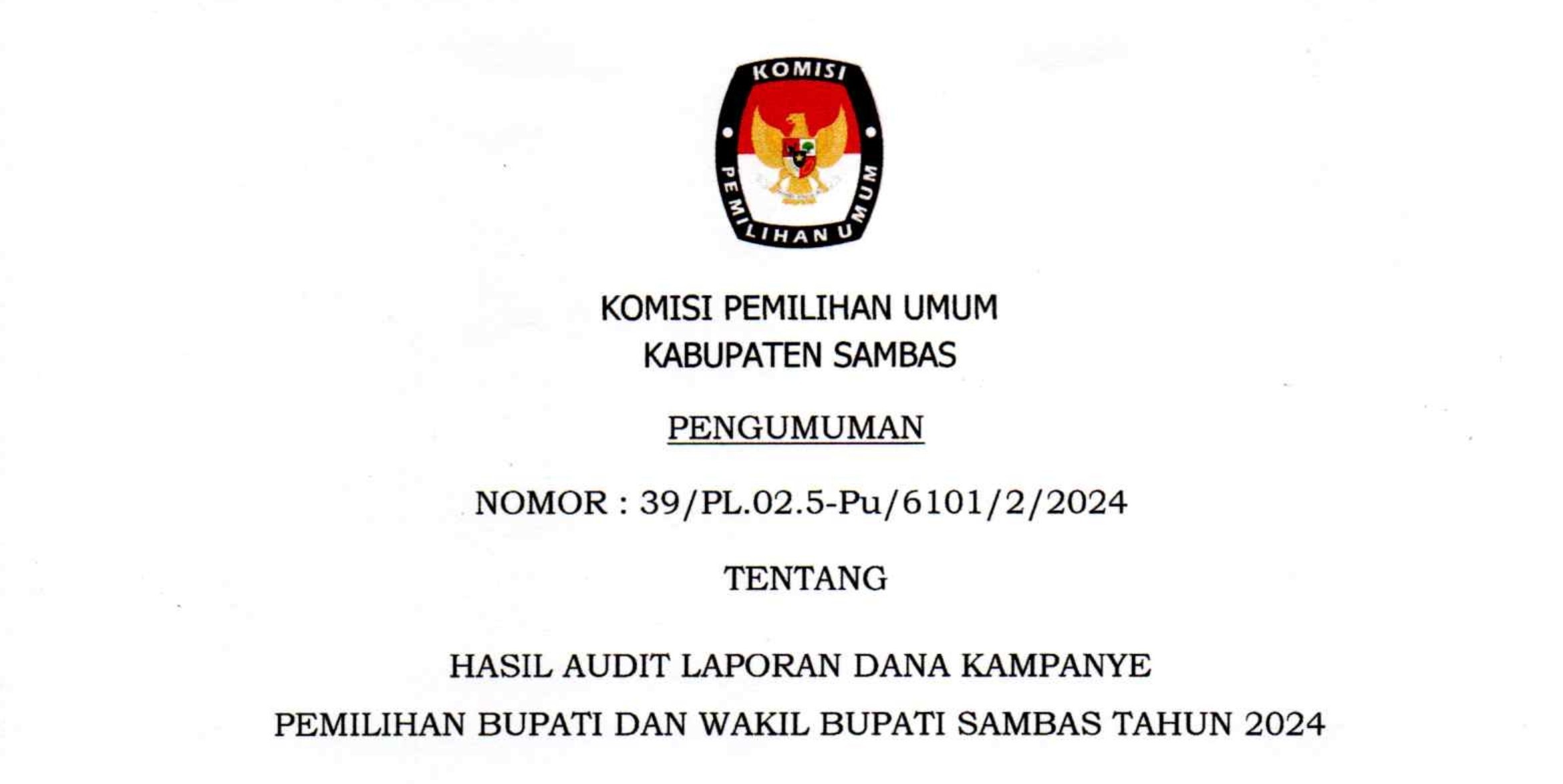 PENGUMUMAN HASIL AUDIT LAPORAN DANA KAMPANYE PEMILIHAN BUPATI DAN WAKIL BUPATI SAMBAS TAHUN 2024