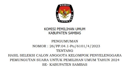 PENGUMUMAN HASIL SELEKSI CALON ANGGOTA KPPS UNTUK PEMILIHAN UMUM TAHUN 2024 SE-KABUPATEN SAMBAS