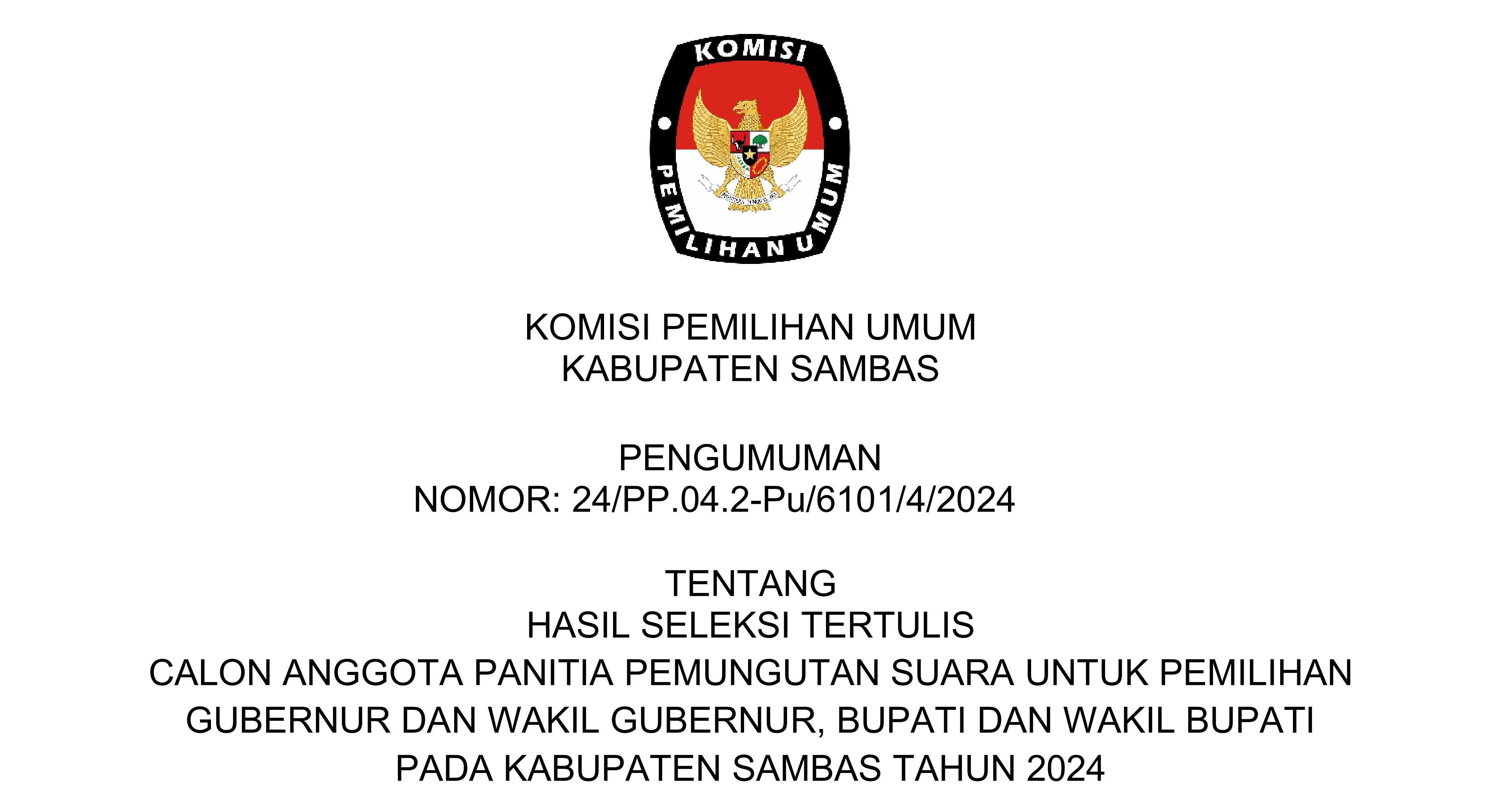 PENGUMUMAN HASIL SELEKSI TERTULIS CALON ANGGOTA PPS UNTUK PEMILIHAN GUBERNUR DAN WAKIL GUBERNUR, BUPATI DAN WAKIL BUPATI PADA KABUPATEN SAMBAS TAHUN 2024