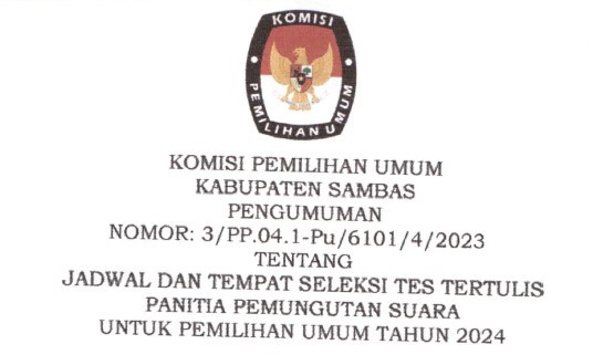 Pengumuman Jadwal dan Tempat Tes Tertulis PPS Pemilu Tahun 2024 Senin, 09 Januari 2023 00:00 825 DOWNLOAD PENGUMUMAN Bagikan: Dilihat 825 Kali.