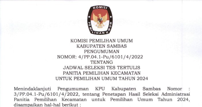 Pengumuman Jadwal Seleksi Tes Tertulis untuk PPK Pemilu 2024 Minggu, 04 Desember 2022 00:00 631 DOWNLOAD PENGUMUMAN Bagikan: Dilihat 631 Kali.