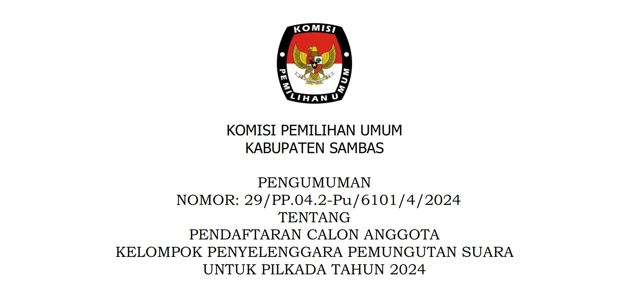 PENGUMUMAN PENDAFTARAN CALON ANGGOTA KPPS UNTUK PILKADA TAHUN 2024