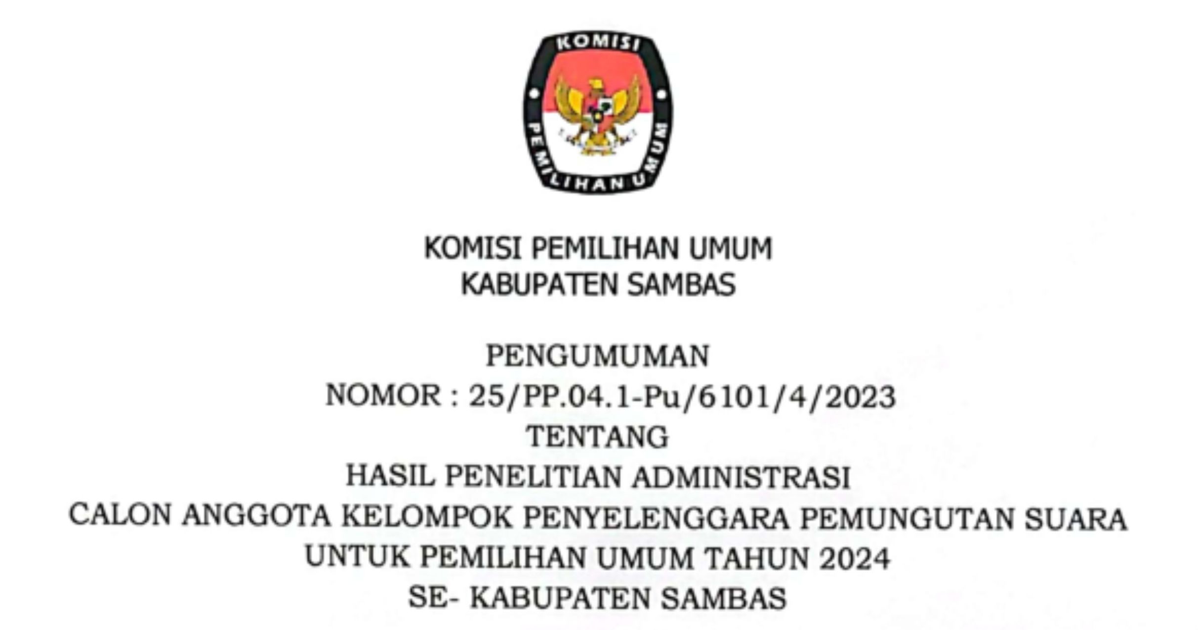 PENGUMUMAN PENELITIAN ADMINISTRASI CALON ANGGOTA KPPS UNTUK PEMILIHAN UMUM TAHUN 2024 SE-KABUPATEN SAMBAS
