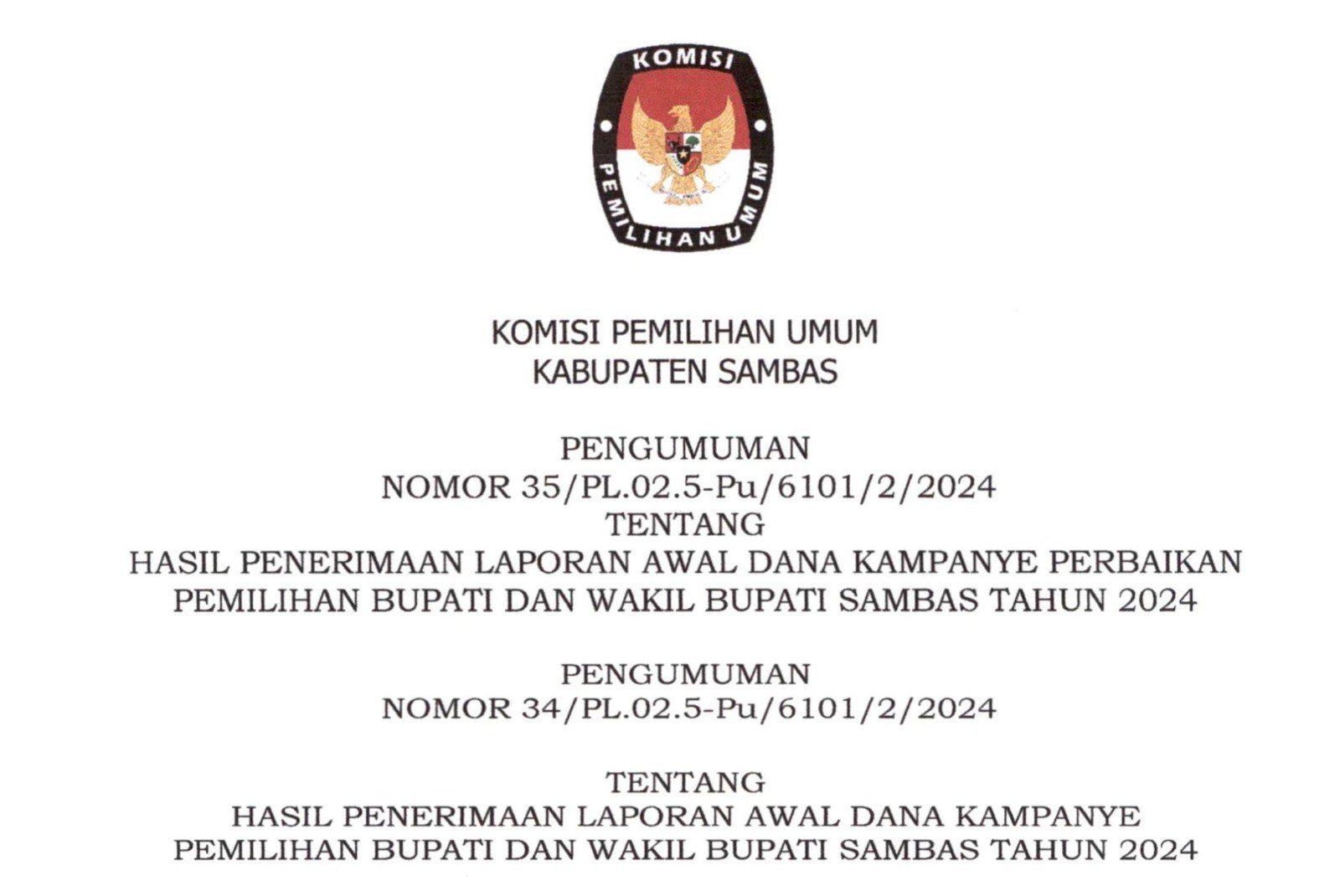 Berikut kami sampaikan PENGUMUMAN TIM KAMPANYE PADA PEMILIHAN BUPATI DAN WAKIL BUPATI SAMBAS TAHUN 2024