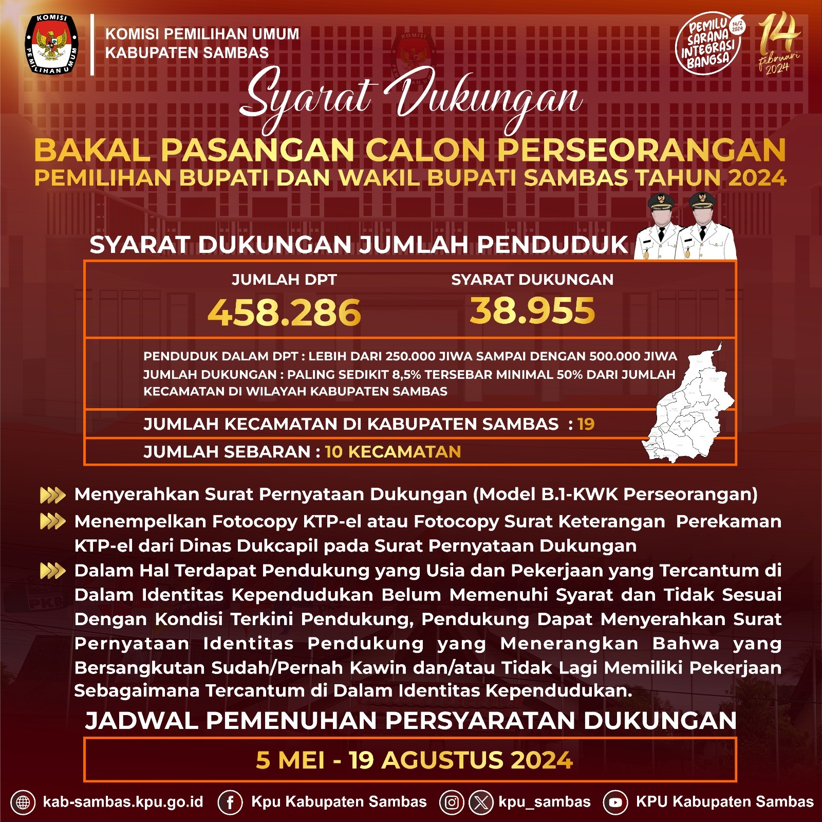 PERSYARATAN DAN SURAT PERNYATAAN DUKUNGAN BAKAL PASANGAN CALON PERSEORANGAN DALAM PILKADA SAMBAS TAHUN 2024
