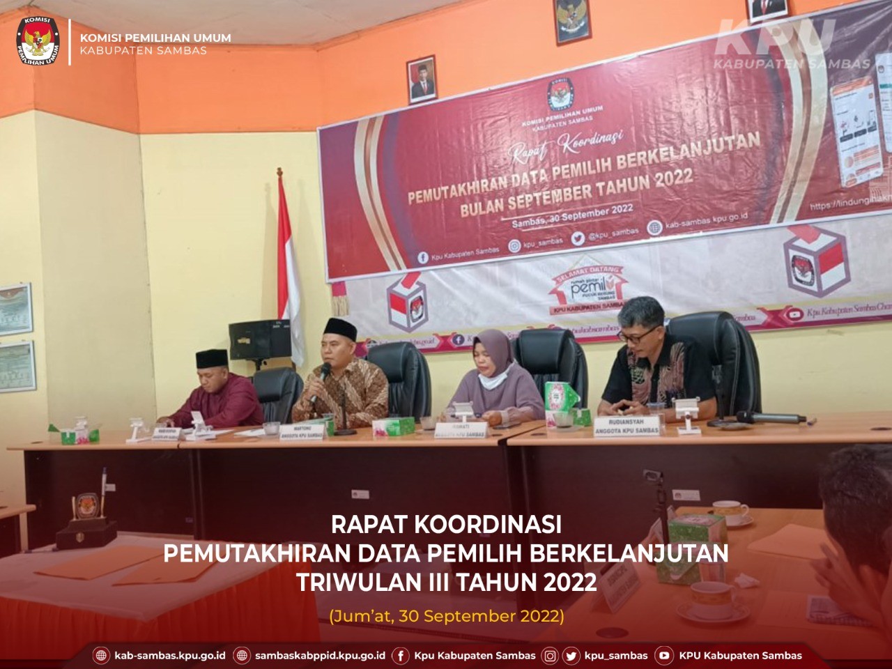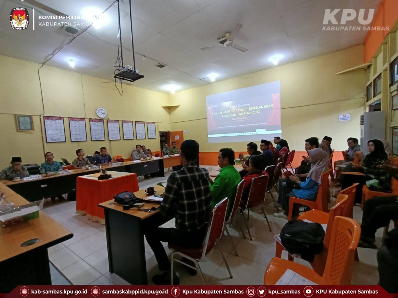 Sambas, kab-sambas.kpu.go.id - KPU Kabupaten Sambas melaksanakan kegiatan Rapat Koordinasi Pemutakhiran Daftar Pemilih Berkelanjutan (PDPB) Triwulan III Periode September Tahun 2022 bertempat di aula kantor KPU Kabupaten Sambas, Jum’at (30/9/2022).